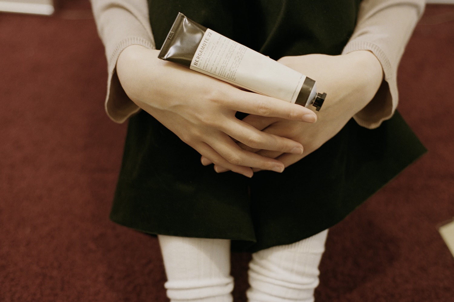 - 乾燥肌なので、特にこれからの季節は欠かさず持ち歩くようにしています。それと、ハンドクリームをつけてお気に入りの香りに包まれながらリラックスして眠りにつく瞬間が好きで。ケア以外の面でも、自分を満たす時間を作ってくれるアイテムですね。