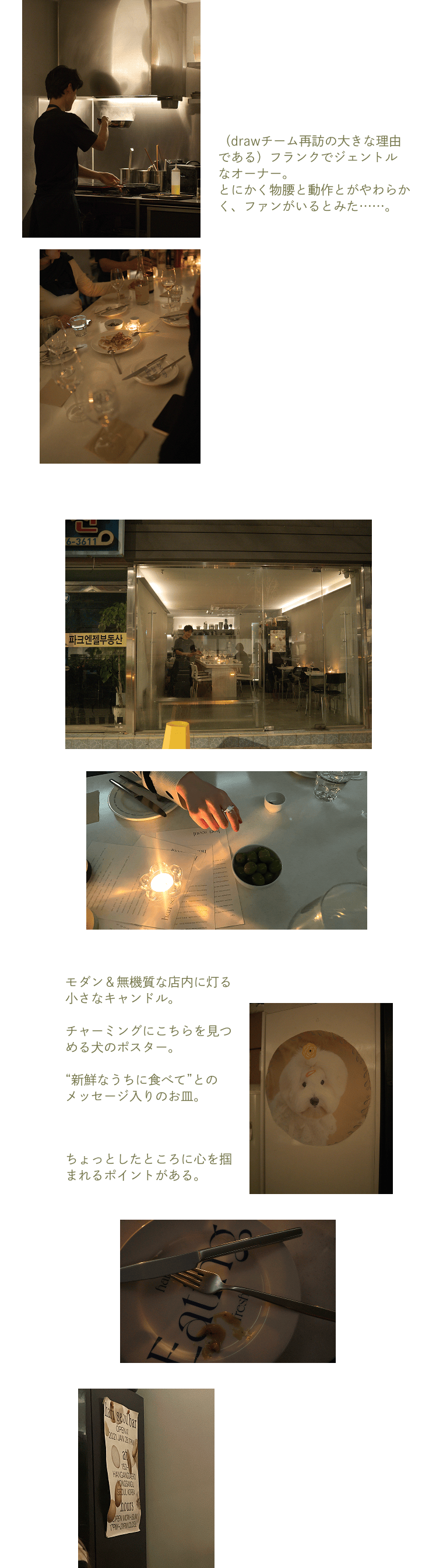 コートを受けとるにも、メニューを広げるにも、ペアリングのワインを説明するにも、姿勢がしゃんとしていて、その仕草はゆったりとしているのに、無駄がない。