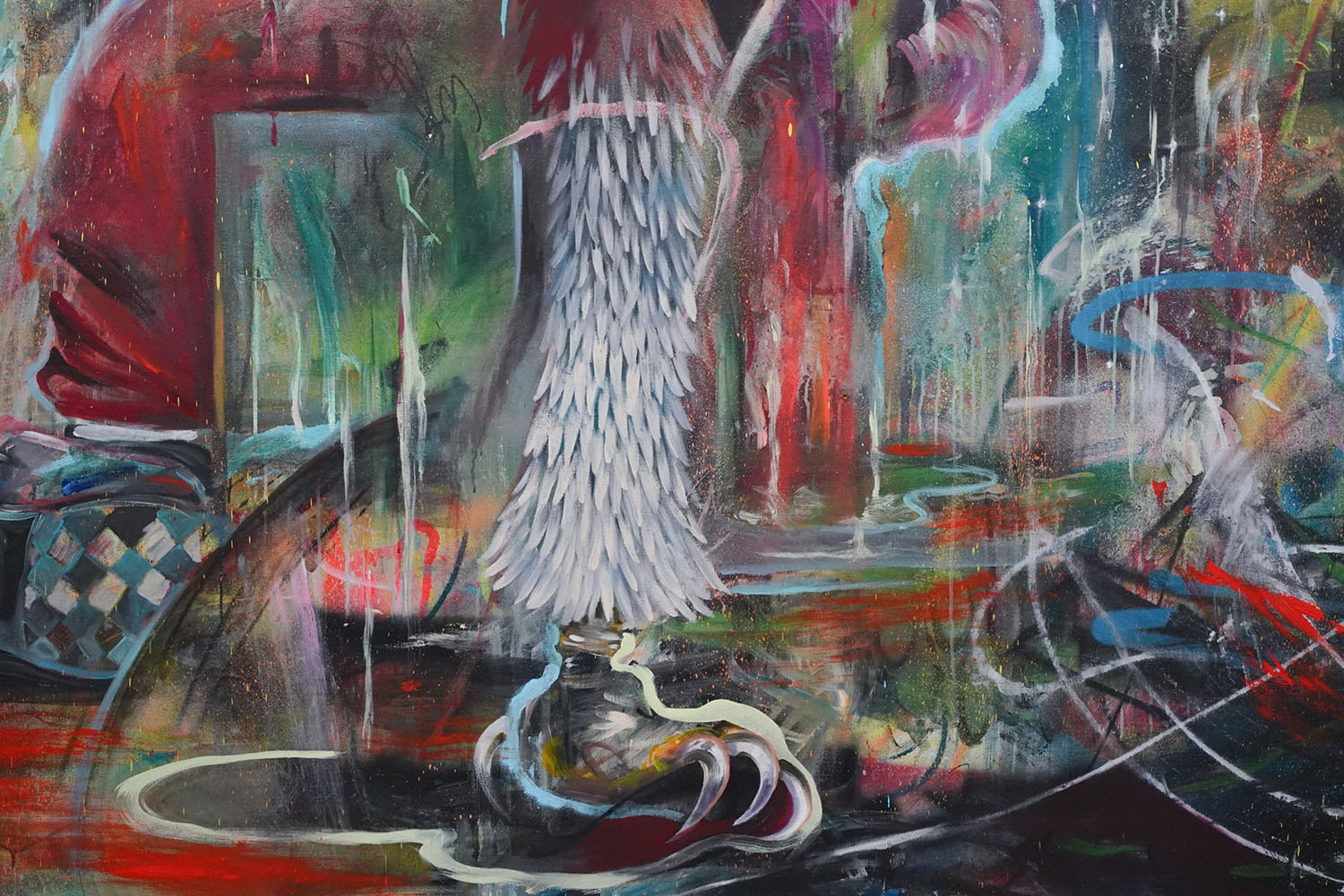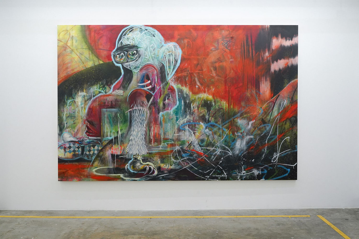 - NAZE:150号の大きなキャンバスの作品ですね。会期中も何度も描き直して、これがいまの自分だと思えたのは最後の瞬間だけ。あの絵には、自分の葛藤と整理がそのまま出ていると思います。