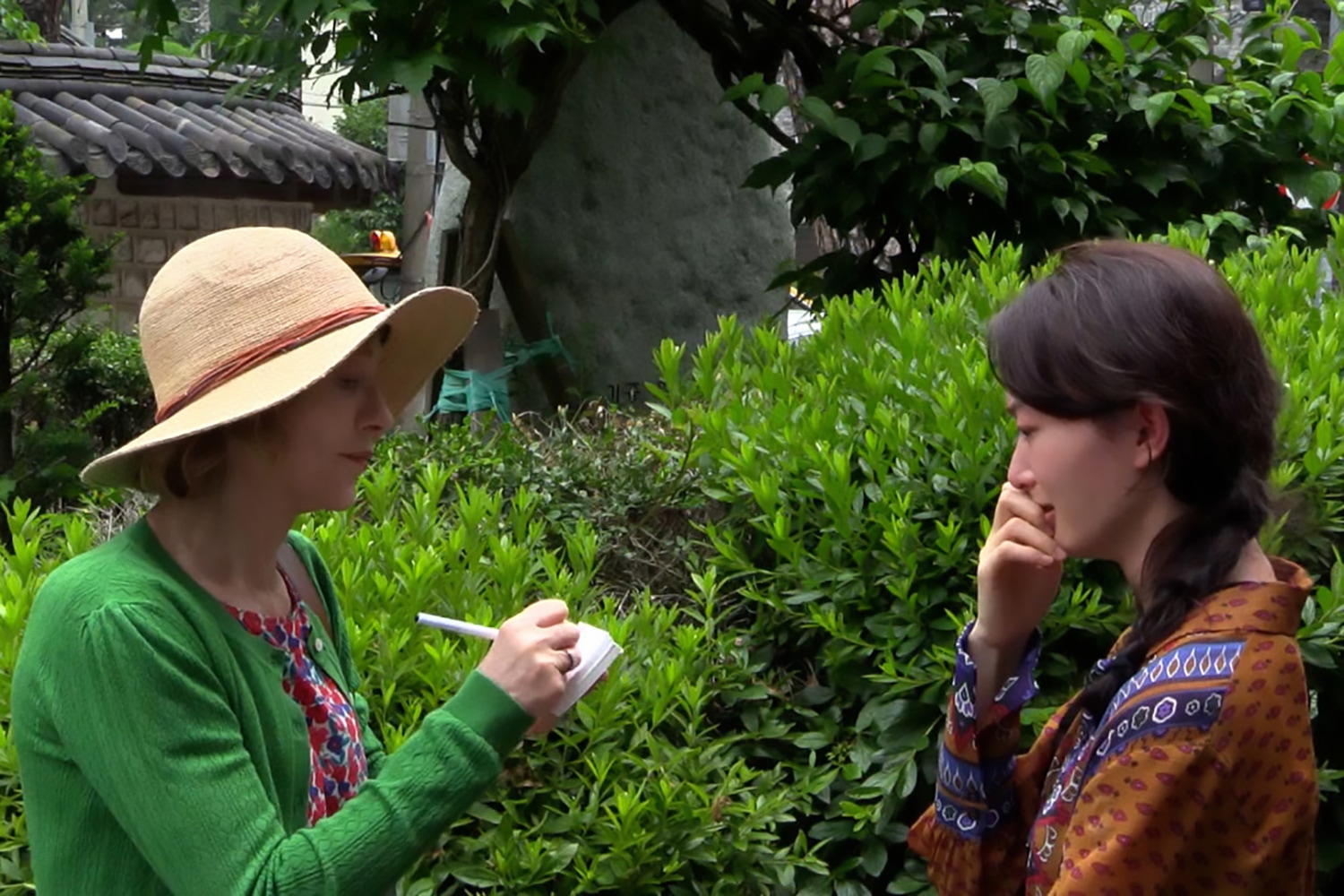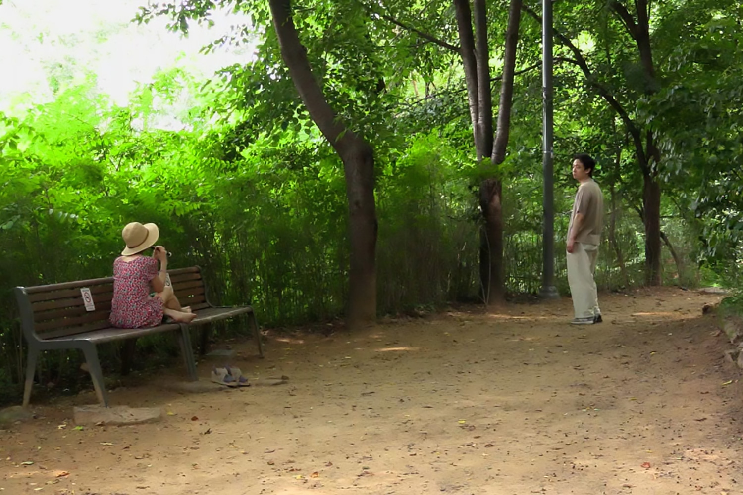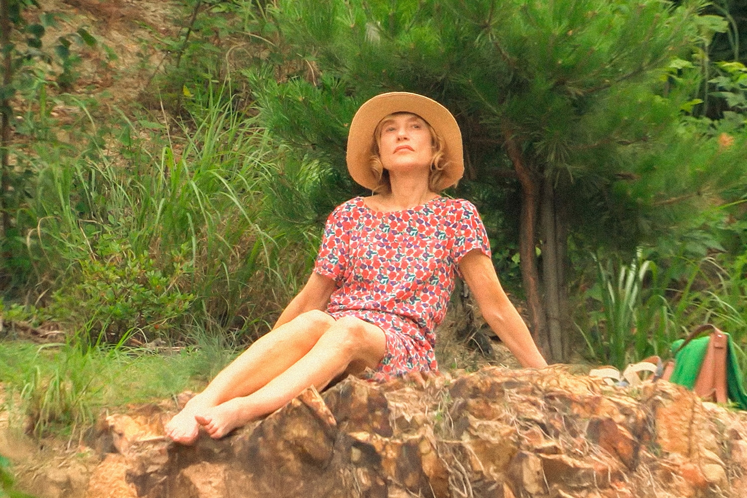 イザベルが今回演じるのはふわふわと日常を楽しむ妖精のようなイリス役。フランスからソウルにやってきて散歩のように旅行する彼女の日々が描かれます。イリスは生徒の家で、独特な教授法でフランス語を教えています。それは、生徒が表した感情をフランス語に訳して、生徒が自分でそれを繰り返して覚えていくというもの。友だちのように優しく、でも繰り返し生徒の感情を聞くイリスは、自分の感情を掴み取れと観客にも言っているかのようです。そうして生まれた言葉は詩的で美しく、風景とともに心に残ります。