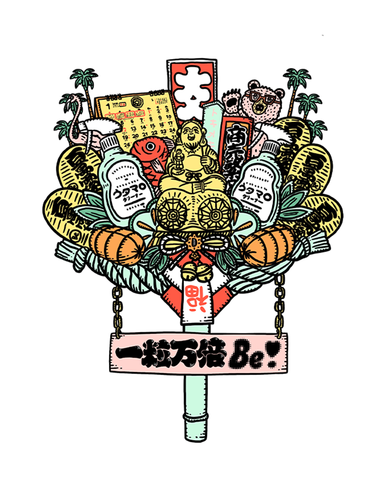 😇.∘ イラストレーターの平沼さんに描きおろしていただいた熊手にもウタマロが入っていましたね!!ご利益アイテムてんこ盛りでめちゃくちゃ可愛い!断捨離&キュートなグッズで掃除して、来年こそは人生変えたいです!