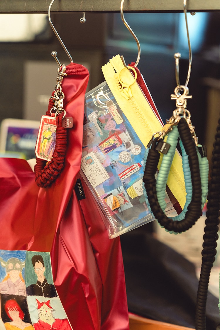 〈A SCENE〉のストラップに、「JYUKU」セレクトのチャームを組み合わせるカスタムも好評。
