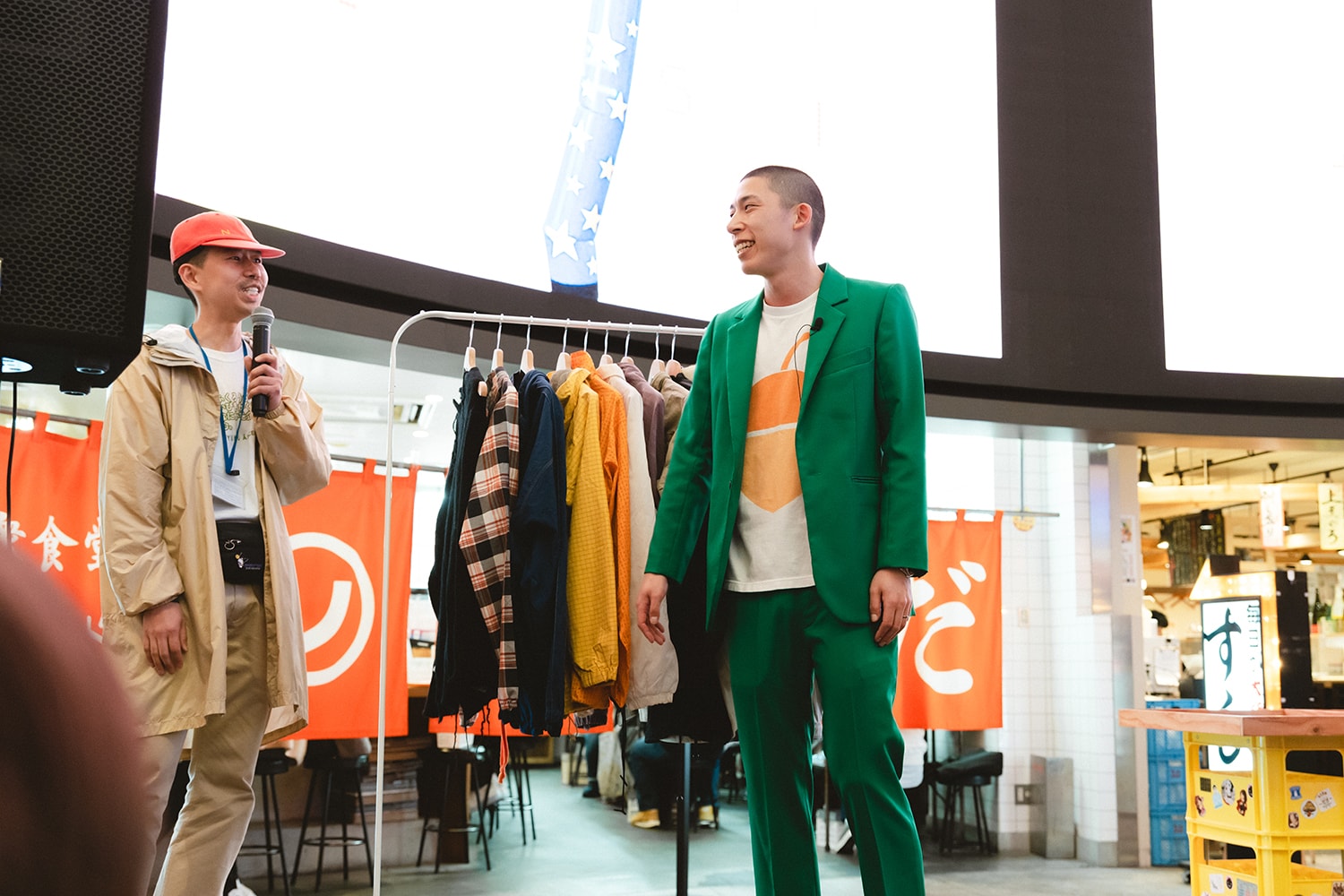 「JYUKU」のゴウダさんがどんぐりたけしさんのためにセレクトした古着を、その場で試着!
