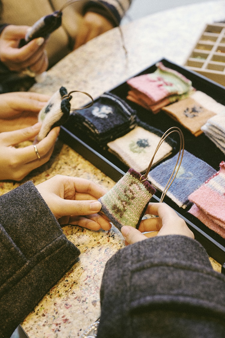 「LOVE it ONCE MORE」の御守りキーチャーム作りワークショップでは、 ひと針ひと針丁寧に縫い合わせていく、参加者の真剣な姿が印象的でした。朝から黙々と作業に没頭する、心落ち着く時間に。