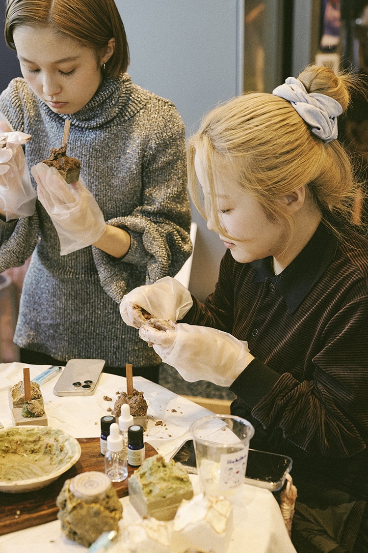 Shimoda Hanaさんによる、自然をテーマにしたキャンドルブランド「putorOramp」のキャンドル作りワークショップ。ロウを成形する少し複雑な作業も、Shimoda Hanaさんの丁寧なサポートのもと、オリジナルキャンドル作りに挑戦。朝からクリエイティビティを刺激するひとときを。