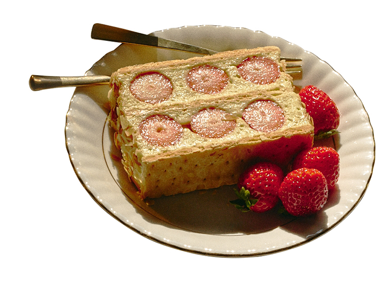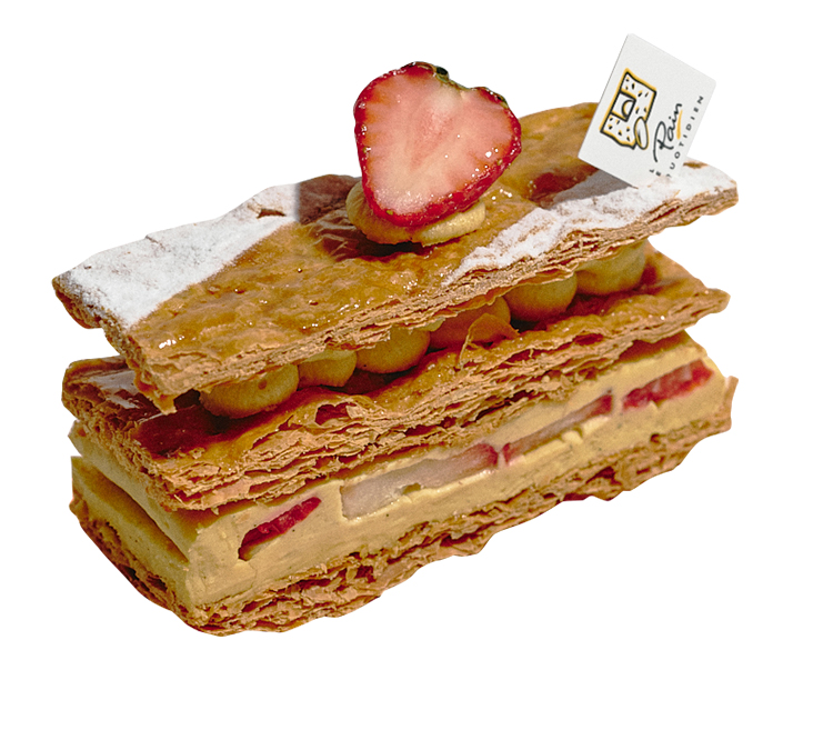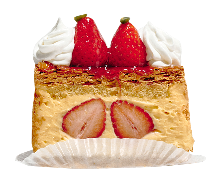 ザクザク幸せな食感に頬ゆるむパイの存在感。層ごとに異なるカスタード&イチゴとのマリアージュ。あともう少し食べたい!と思わせる軽やかさがまたいい。