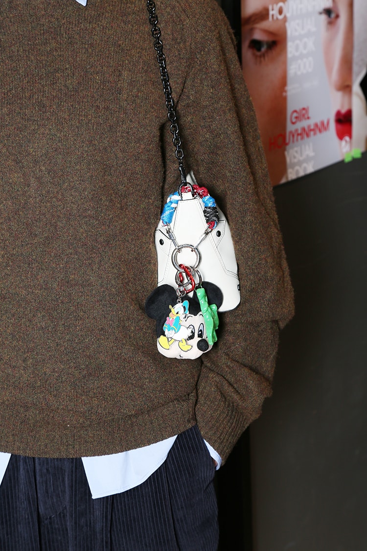 「秋色ニットに淡いブルーシャツを合わせ、袖口からもチラ見せさせたのがポイントです。落ち着いた雰囲気になりすぎないように、ミッキーをバッグにつけてみました! 〈DIDION〉のキラキラコスメを実際に試してみたらトキメキが止まらず……! 限定セットを購入しちゃいました!」