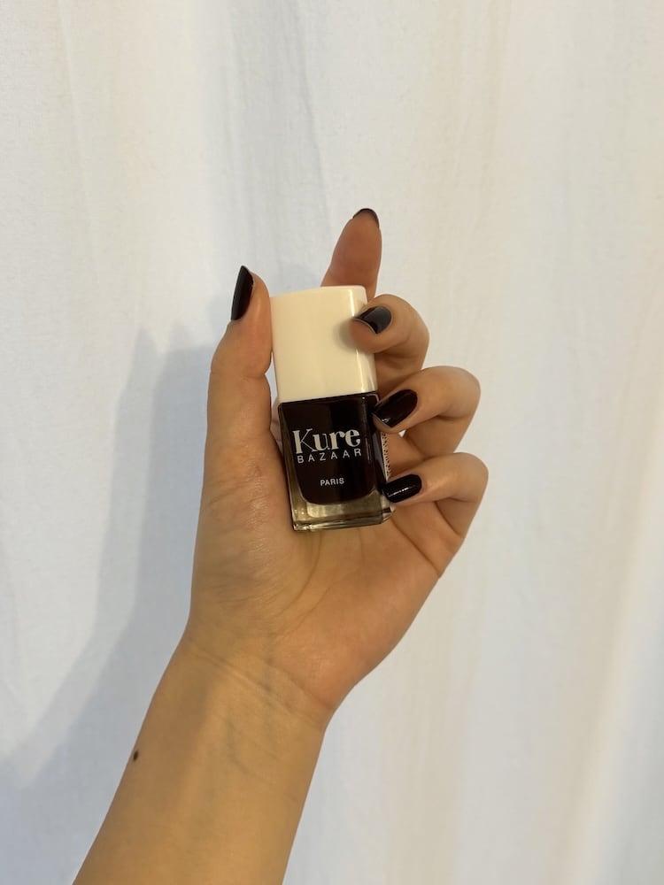 セルフネイル派です。パリ発のエコナチュラルなネイルカラーブランド〈Kure BAZAAR〉 のダークな赤色がお気に入りです。