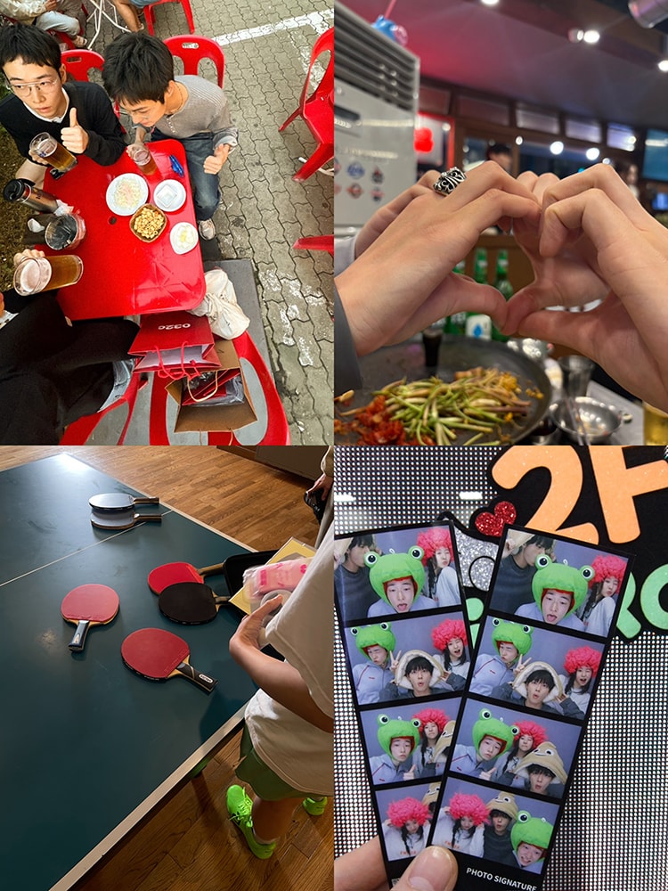 卓球は月に数回、友だちと打っています。いまの目標は学生時代の打球感覚を取り戻すこと。練習あるのみですね。韓国に滞在している時は、ごはんを食べながらお酒を飲むことが多く、梨泰院や江南、乙支路あたりに行くことが多かったな。プリクラ文化もすごくて、老若男女みんな撮っているのが印象的でした!
