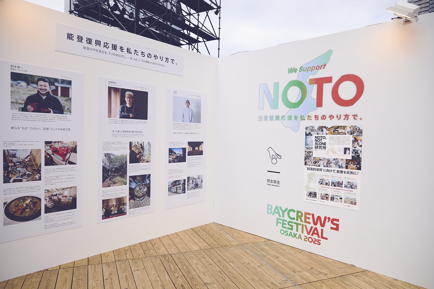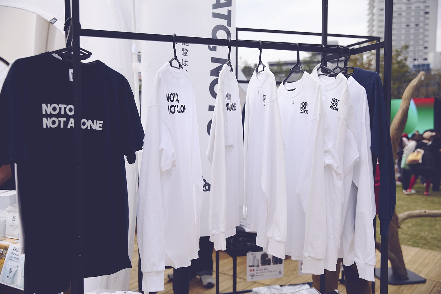 そして今回いちばんのトピックが“NOTO”ブース。昨年から行っている能登復興支援に向けた募金に加え、今回は入場料を全額被災地へ寄付するなど、チャリティへの試みはさらにパワーアップ。こちらのブースではさまざまな現地のお店とタッグを組み、地酒やフルーツを使ったドリンク、コラボレーションTシャツにコーヒー豆など、能登の魅力を発信するショップがずらりと並んでいました。