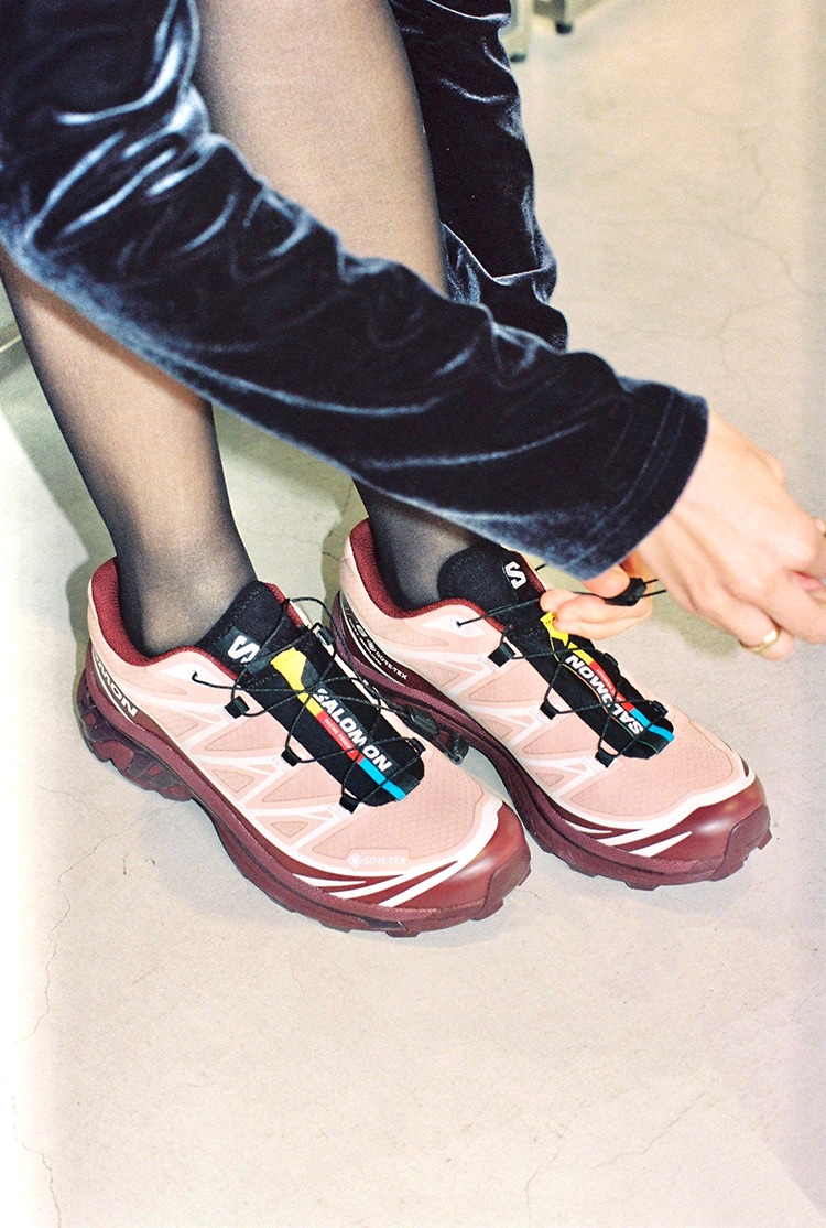高いクッション性とグリップ力を備えた機能性の高さはもちろん、カラバリの妙も魅力のひとつ。なんともかわいい小豆色の「XT-6 GORE-TEX」は防水仕様ながらも、女の子が履くとぐっと柔らかい印象に。