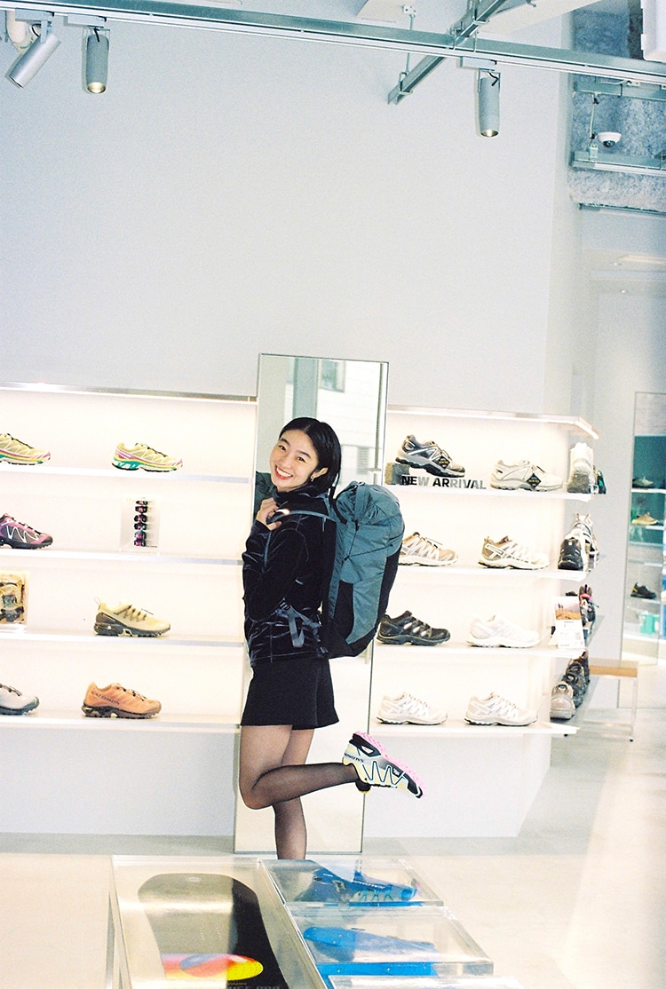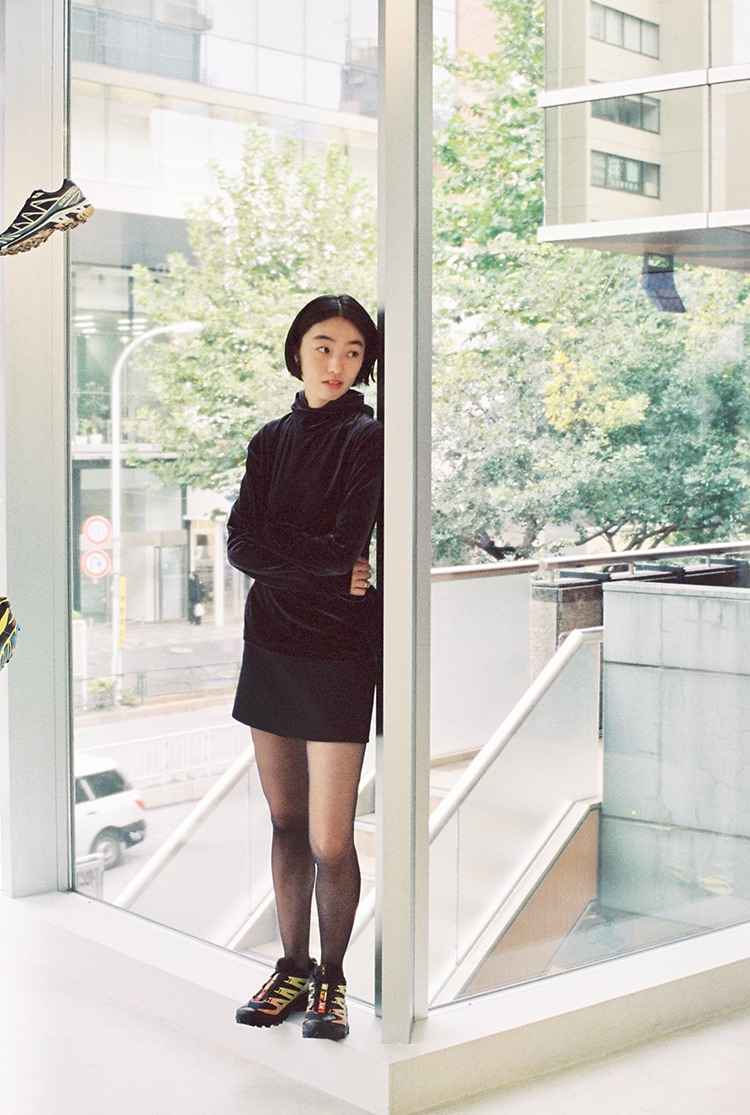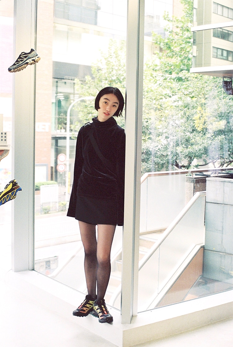 一方、こちらも定番の「XT-4 OG」。2000年代のトレイルランニングシューズを復刻し、当時のデザインに最新技術を融合させた一足。「緑には目がないんです」と、ソールに効いたグリーンが茉穂ちゃん的にお気に召した様子。