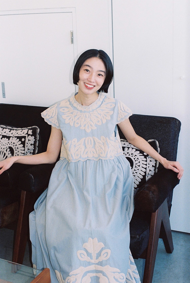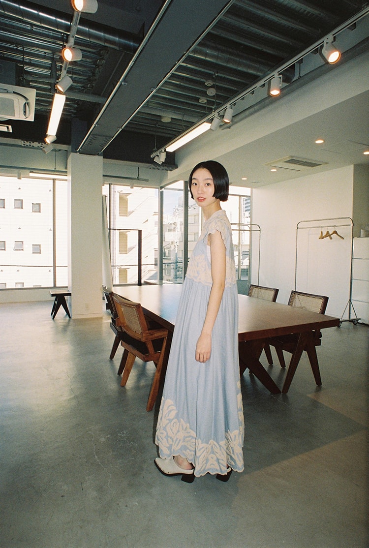 1日の始まりに、と手が伸びたのはこちらのドレス。繊細な刺繍が施された爽やかなブルーが印象的で、「シワとか気にしなくてよさそう!」と、見た目よりずっと気負わず着られる一着。コットン素材で肌あたりもよく、朝からさらっと着たくなるのも納得です。