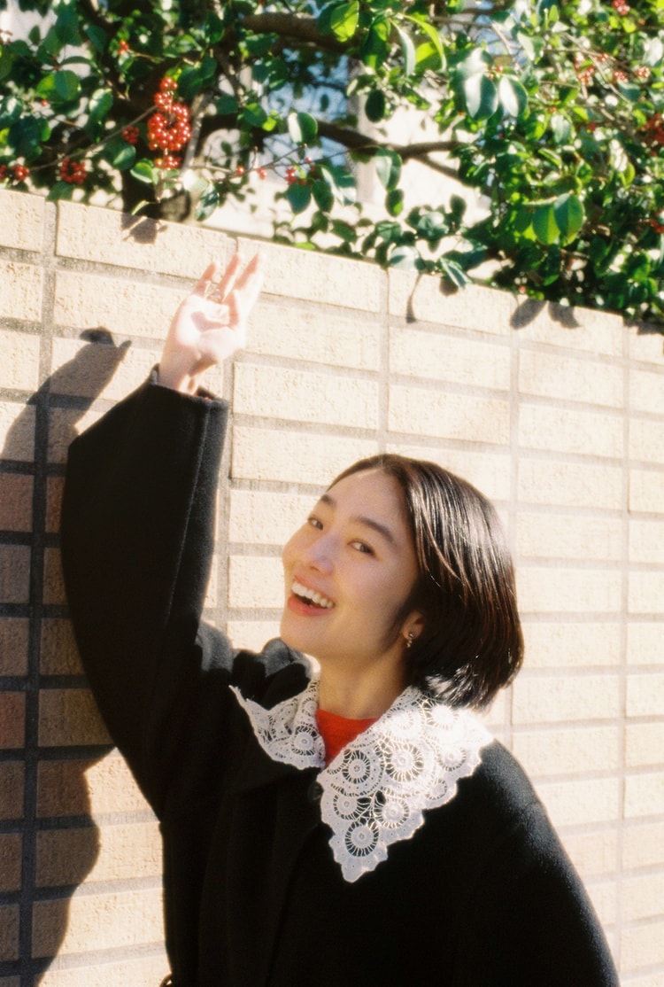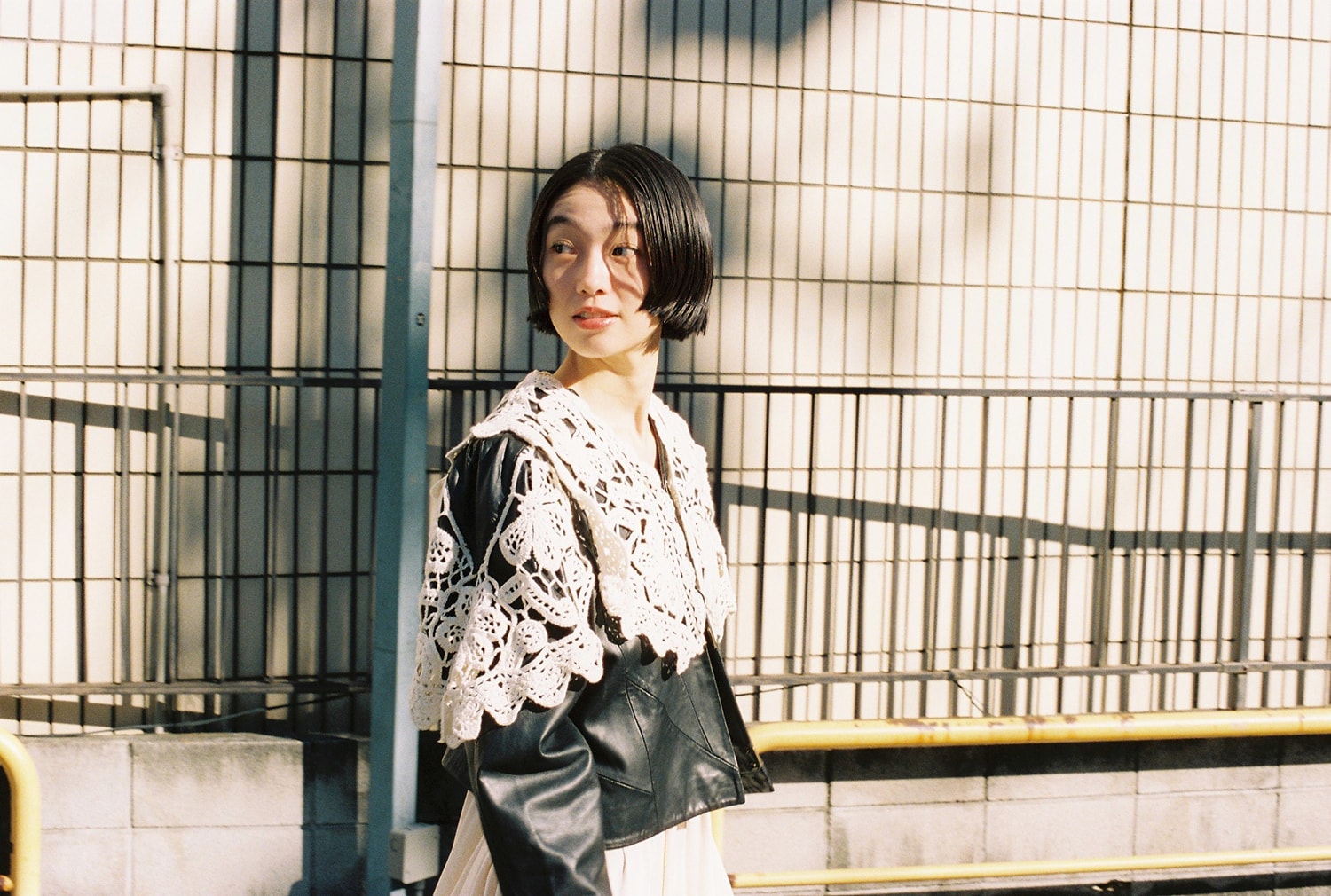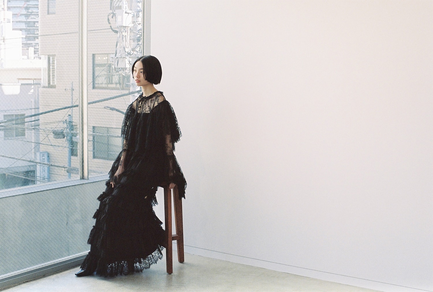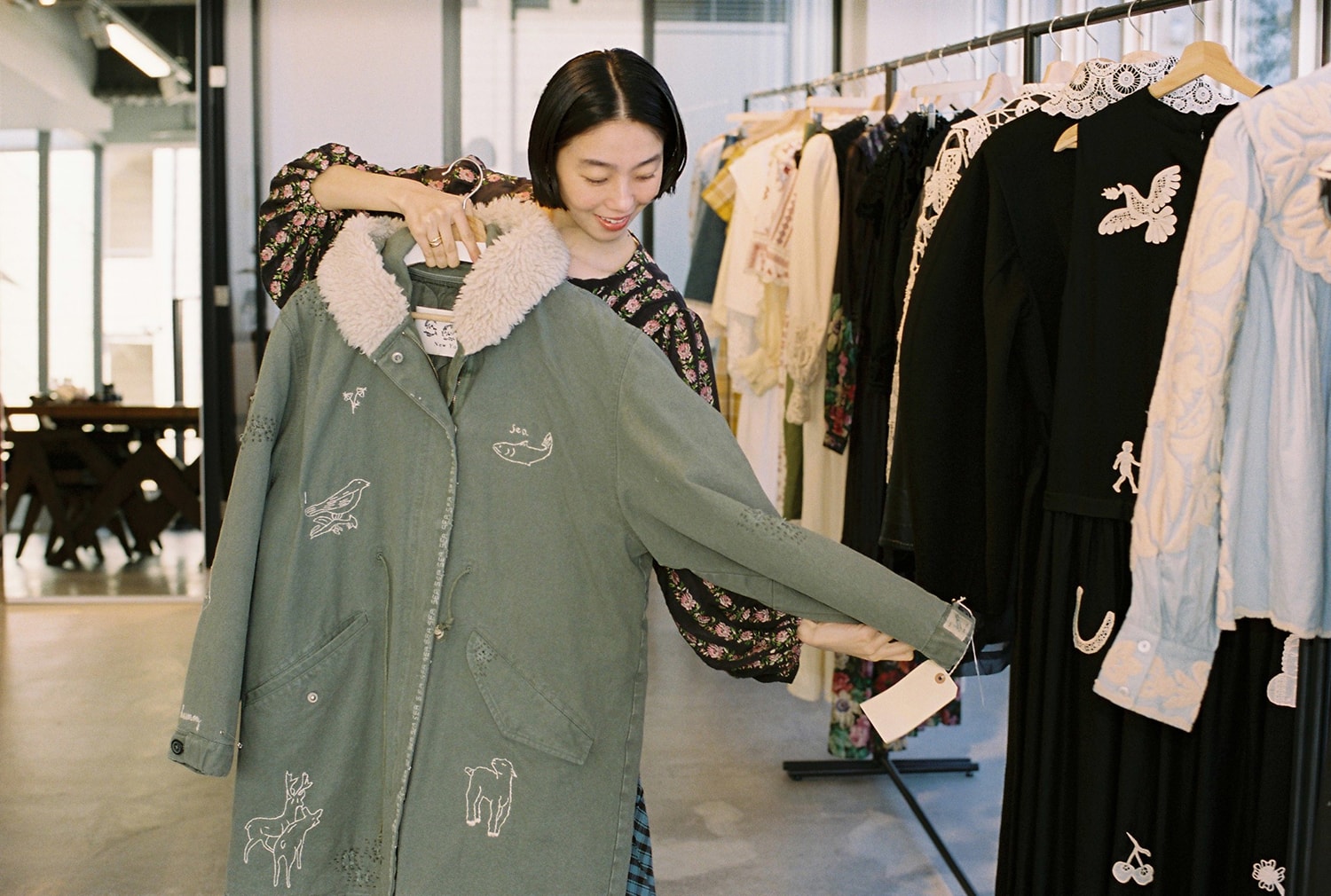最後は、上質なウールを使用したエリソンコートを主役に。刺繍レースの襟がアクセントになっていて、どこかヴィンテージを思わせる佇まいです。