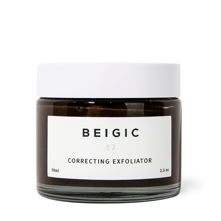 韓国のヴィーガンスキンケアブランド〈BEIGIC〉の顔用スクラブ、コレクティングエクスフォリエーター。コーヒーパウダーで角質を取り除き、グリーンコーヒービーンオイルが肌に潤いを与えてくれます!