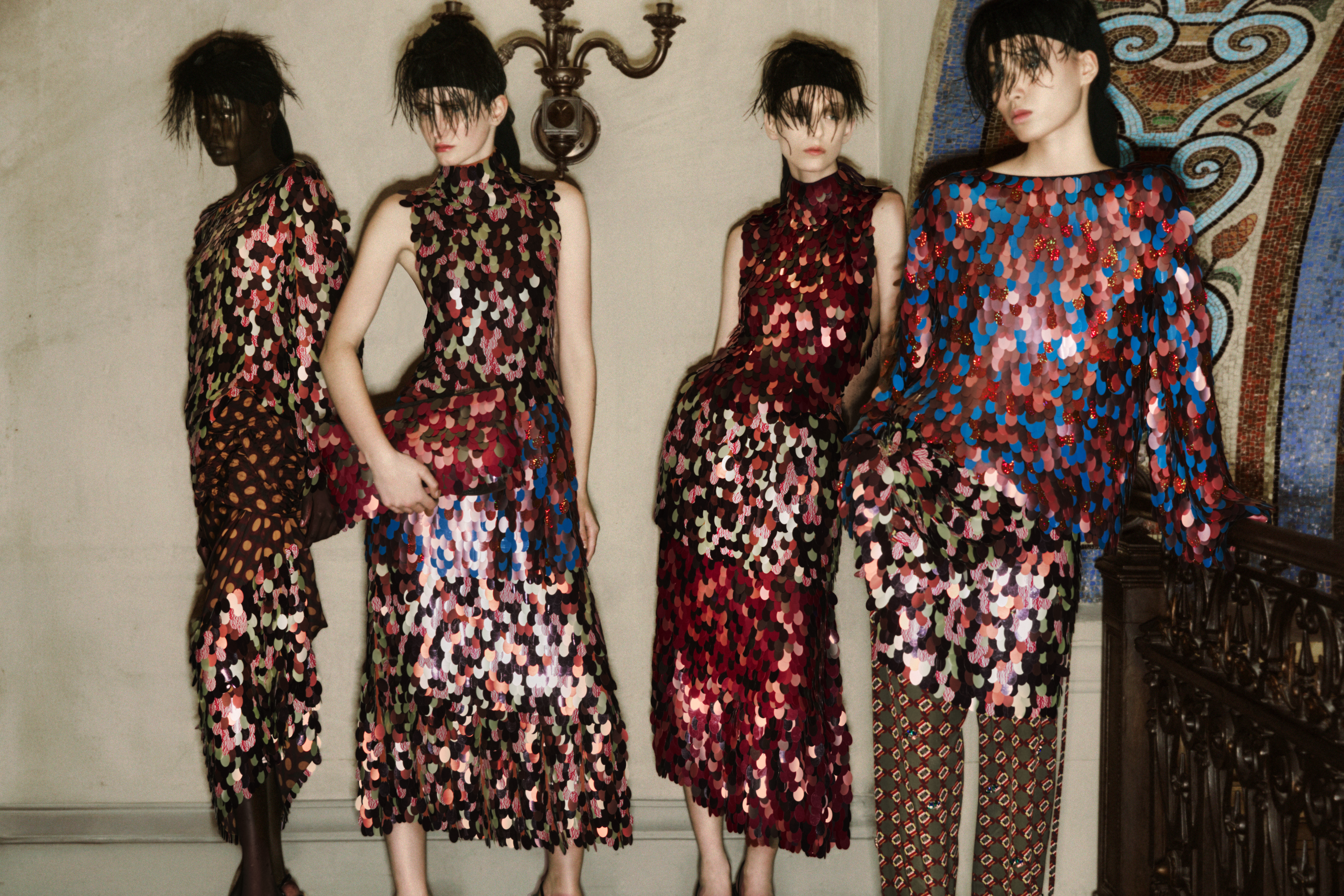 今期掲げるキーワードは「カーテンの向こう側」。舞台となったオペラ・ガルニエのドラマティックな空気を背景に、〈DRIES VAN NOTEN〉らしい色彩やシルエットが際立っています。