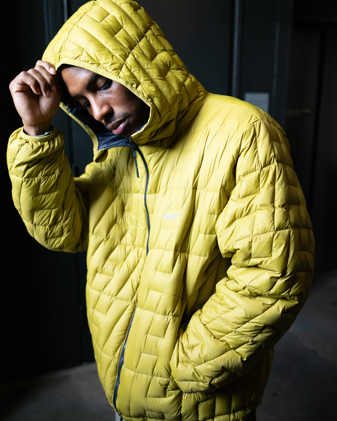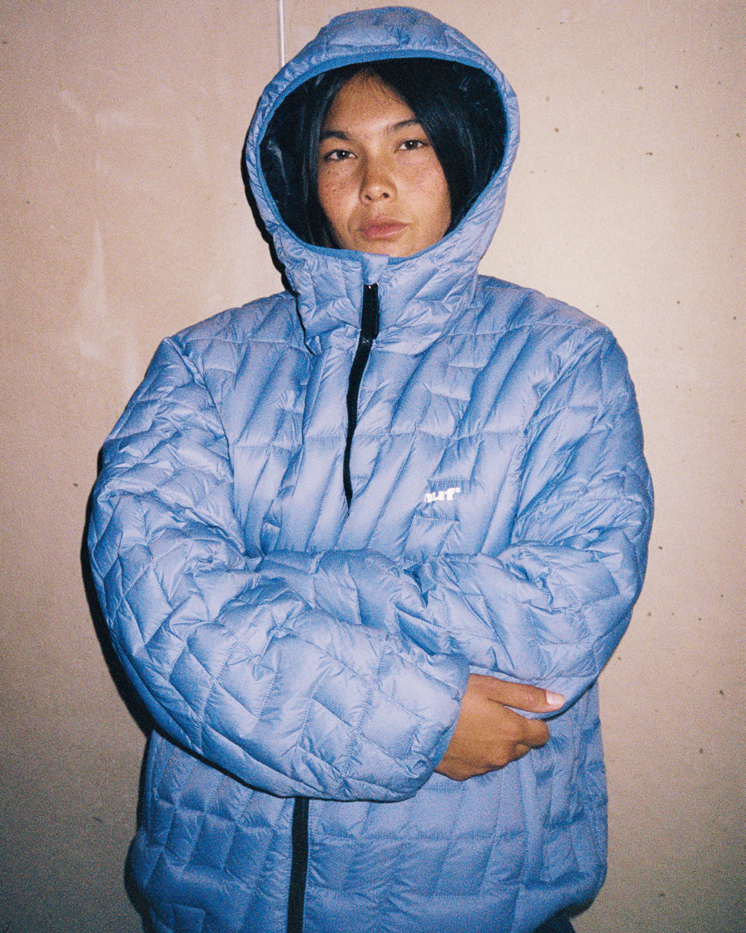 2000年代初頭のクラシックなアウトドアジャケットから着想を得た一着。表地には〈HUF〉のアイコニックな「H」のリピートパターンとダウンポケットをあしらい、裏地はどんなスタイルにも馴染むソリッドな仕上がりとなっています。