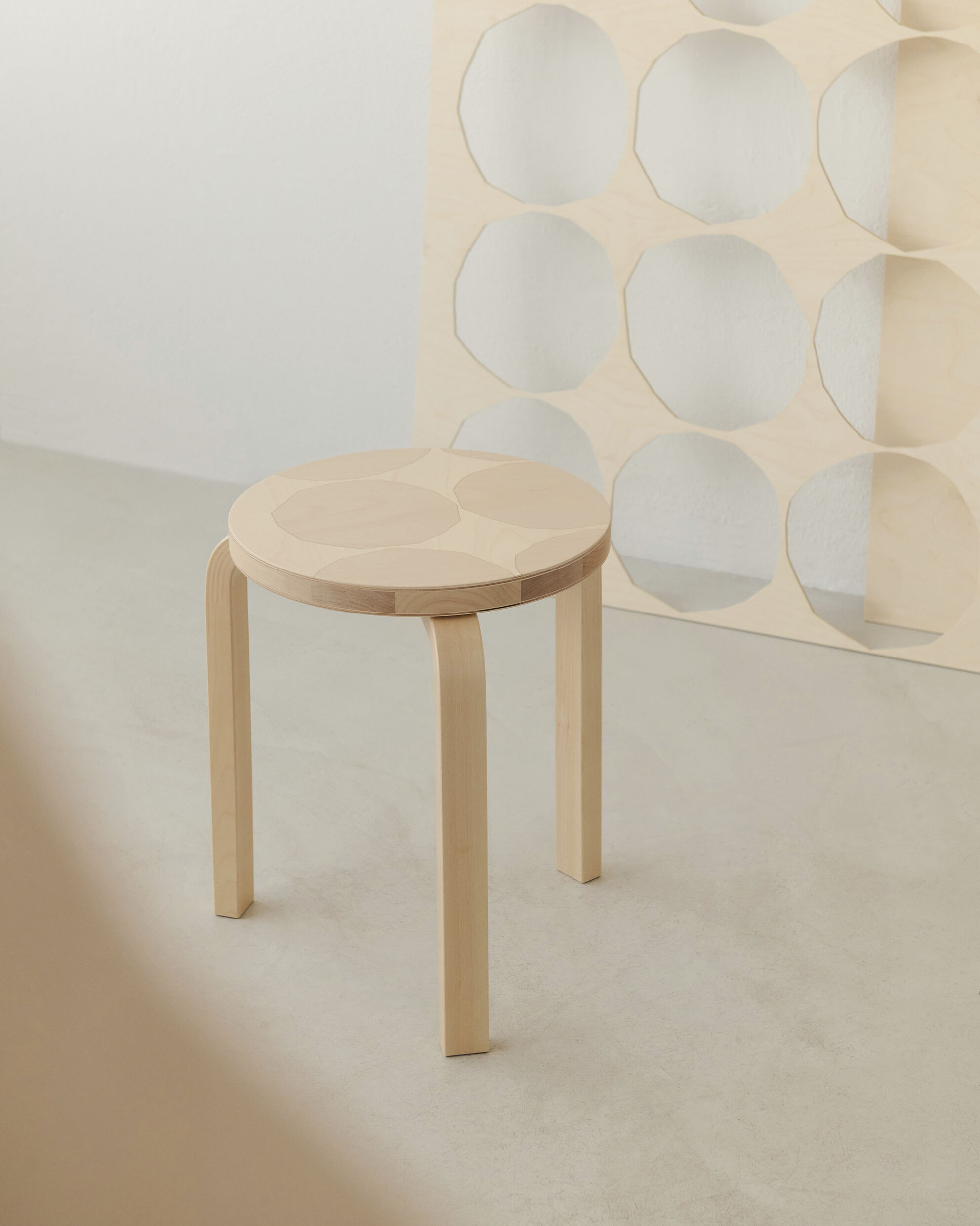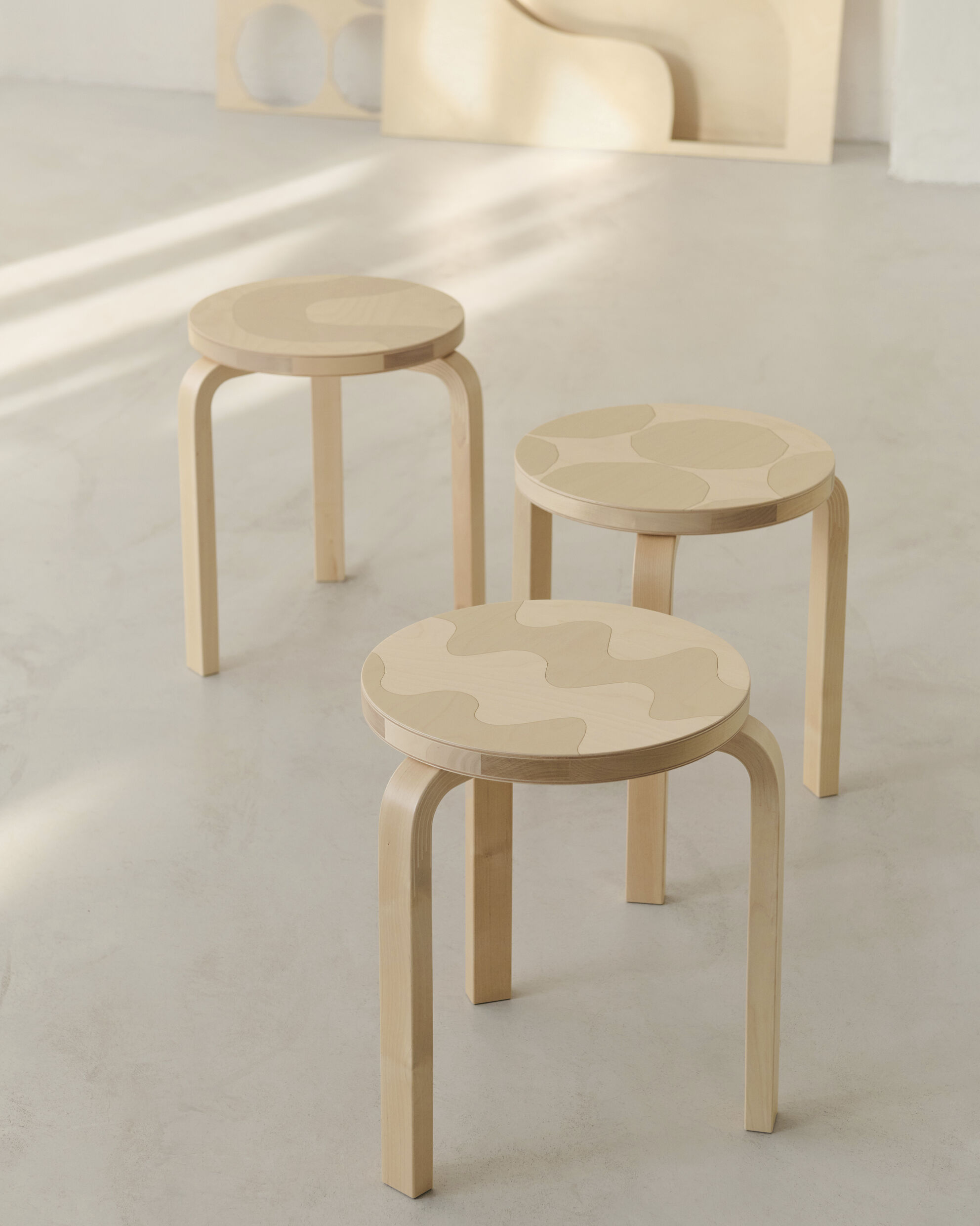 気になるラインナップは、スツール、ベンチ、テーブルの3型。それぞれアイコニックなドット柄、波のような曲線を描くモチーフの3つのパターンを、異なる木材を組み合わせることで表現しています。見る角度や光とともに表情を変え、使うたびに新たな発見や心地よさをもたらしてくれそうです。