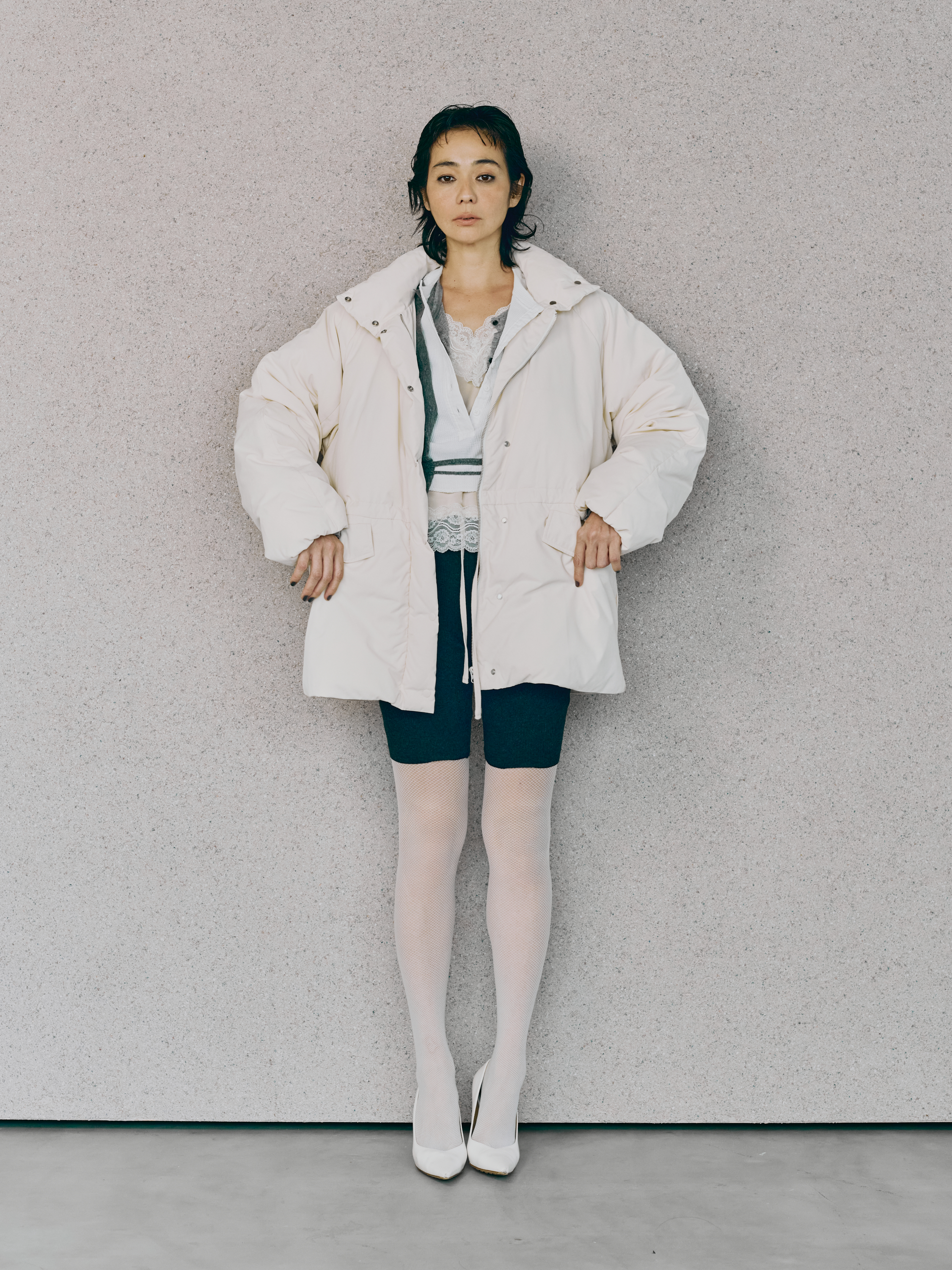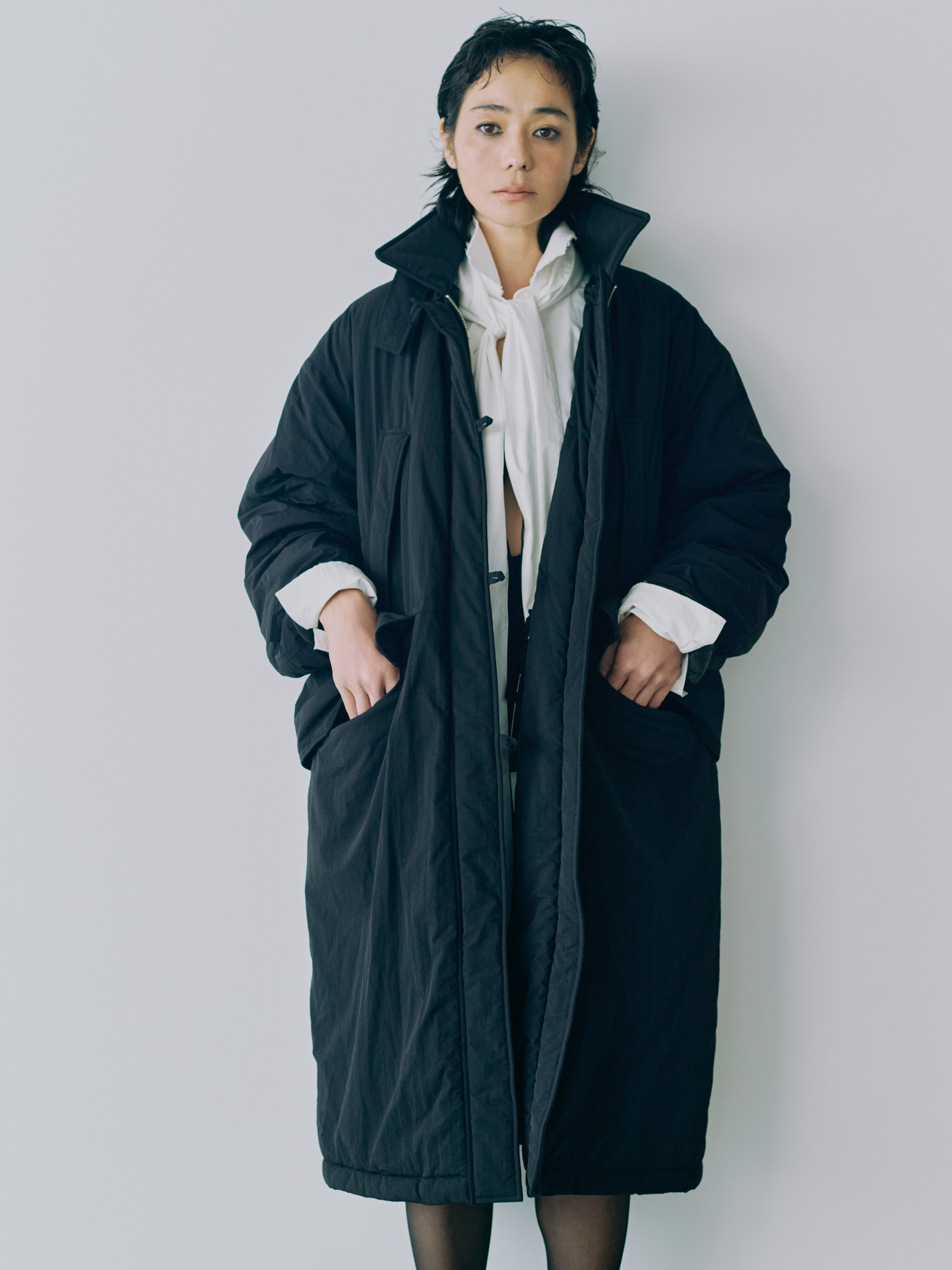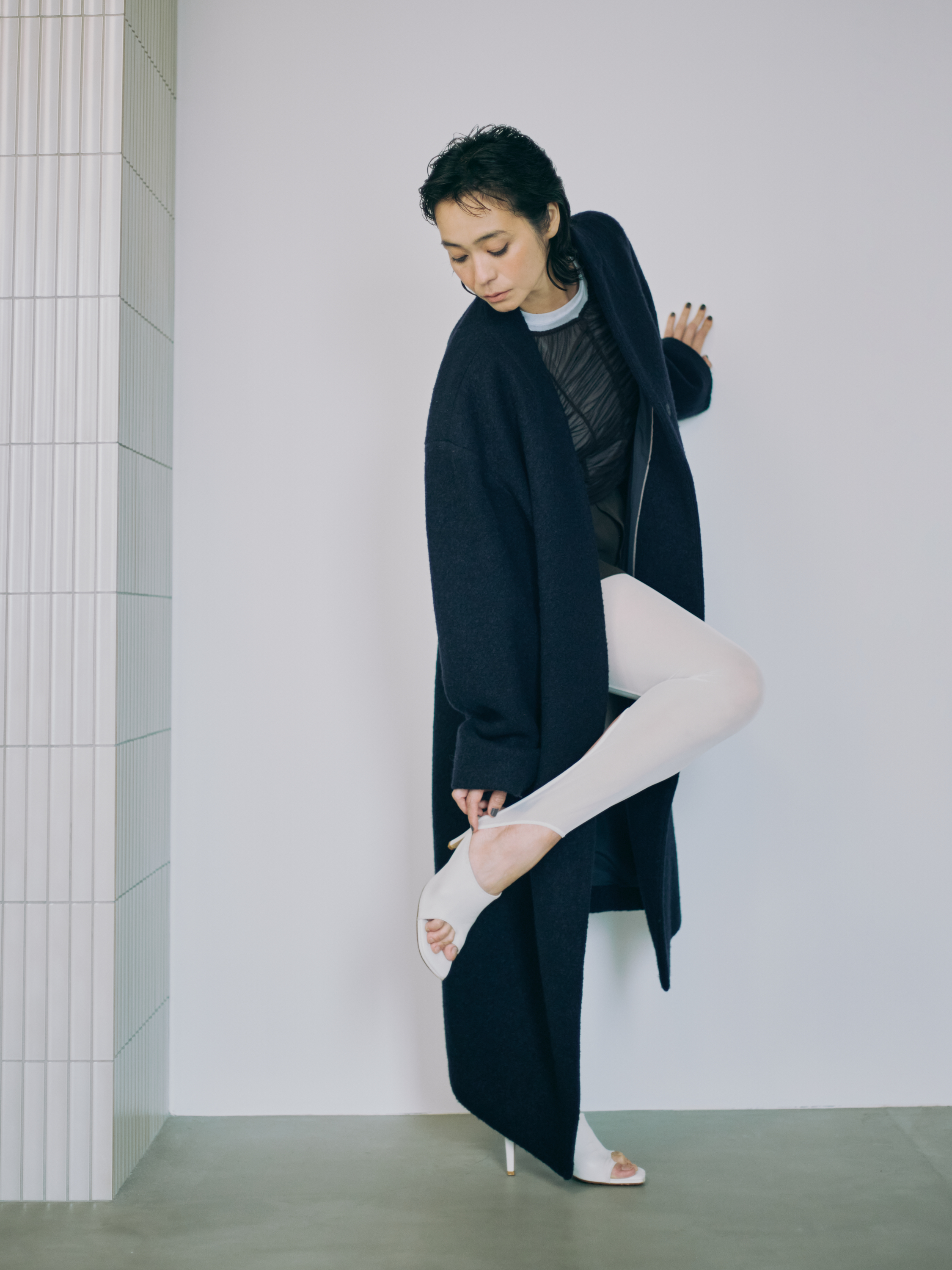 このビジュアルでは、全5型のアウターをベースに、異素材を重ねたスタイリングを展開。レイヤードによって表現することで、表面的な美しさだけでなく、まとう人の内側に潜む静かな強さを引き出しています。