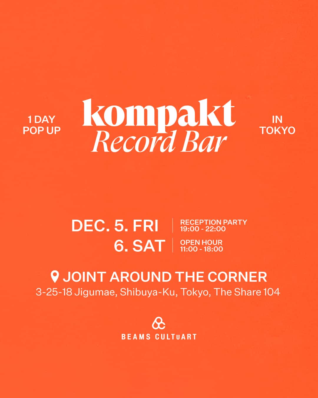 ソウルのミュージックバー「Kompakt Record Bar®」が、〈BEAMS CULTUART〉とともに原宿に1日限定で登場します。