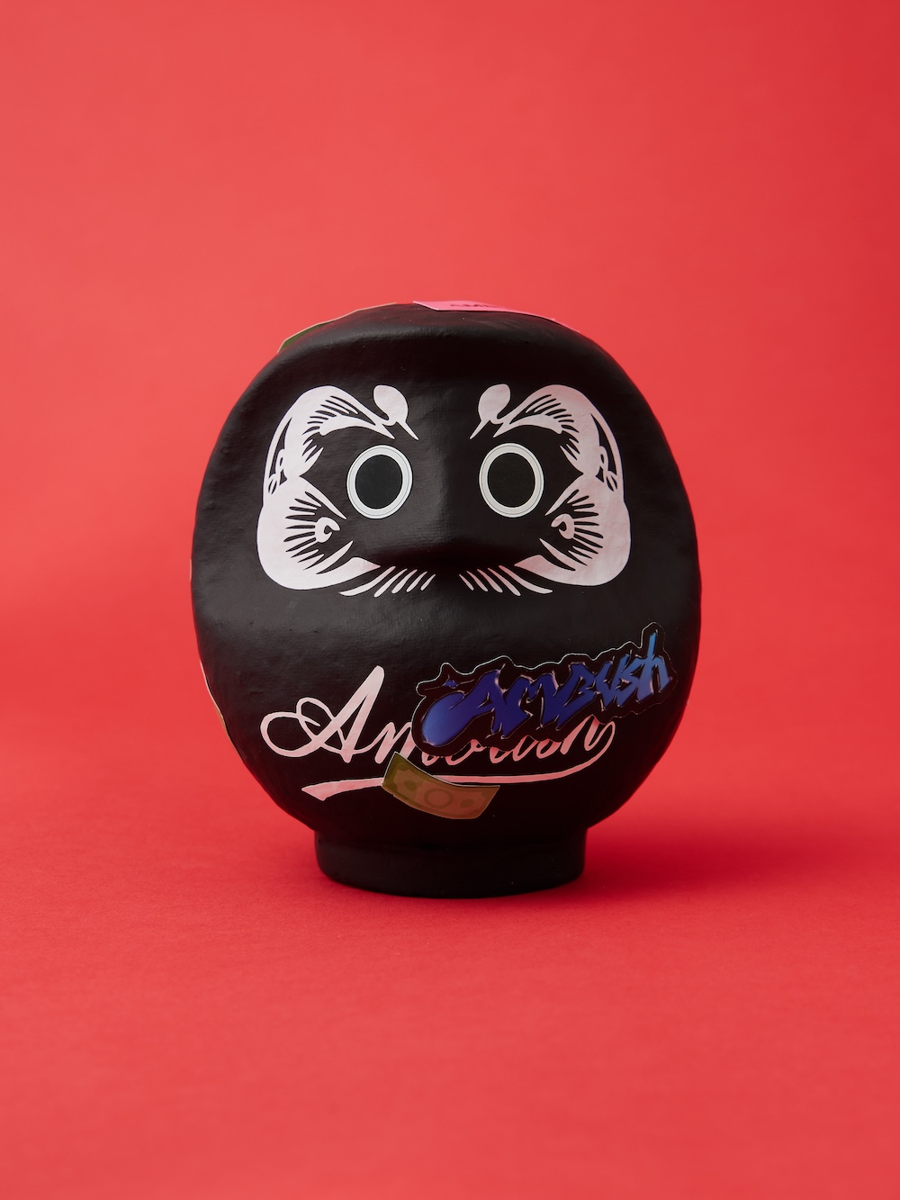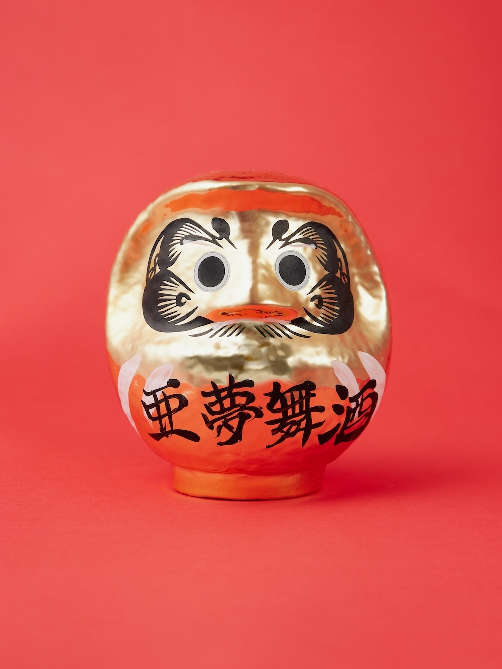 毎年恒例のだるまは、コンパクトなサイズ感で、ゴールドとブラックの2色展開。ゴールドには、ブランド名を漢字であしらった「亜夢舞酒」の文字がデザインされ、ブラックは付属のステッカーで自由にカスタマイズが可能。ブランドロゴをあしらった専用の桐箱と目玉シールも付属し、お正月のムードをぐっと盛り上げてくれること間違いなし。
