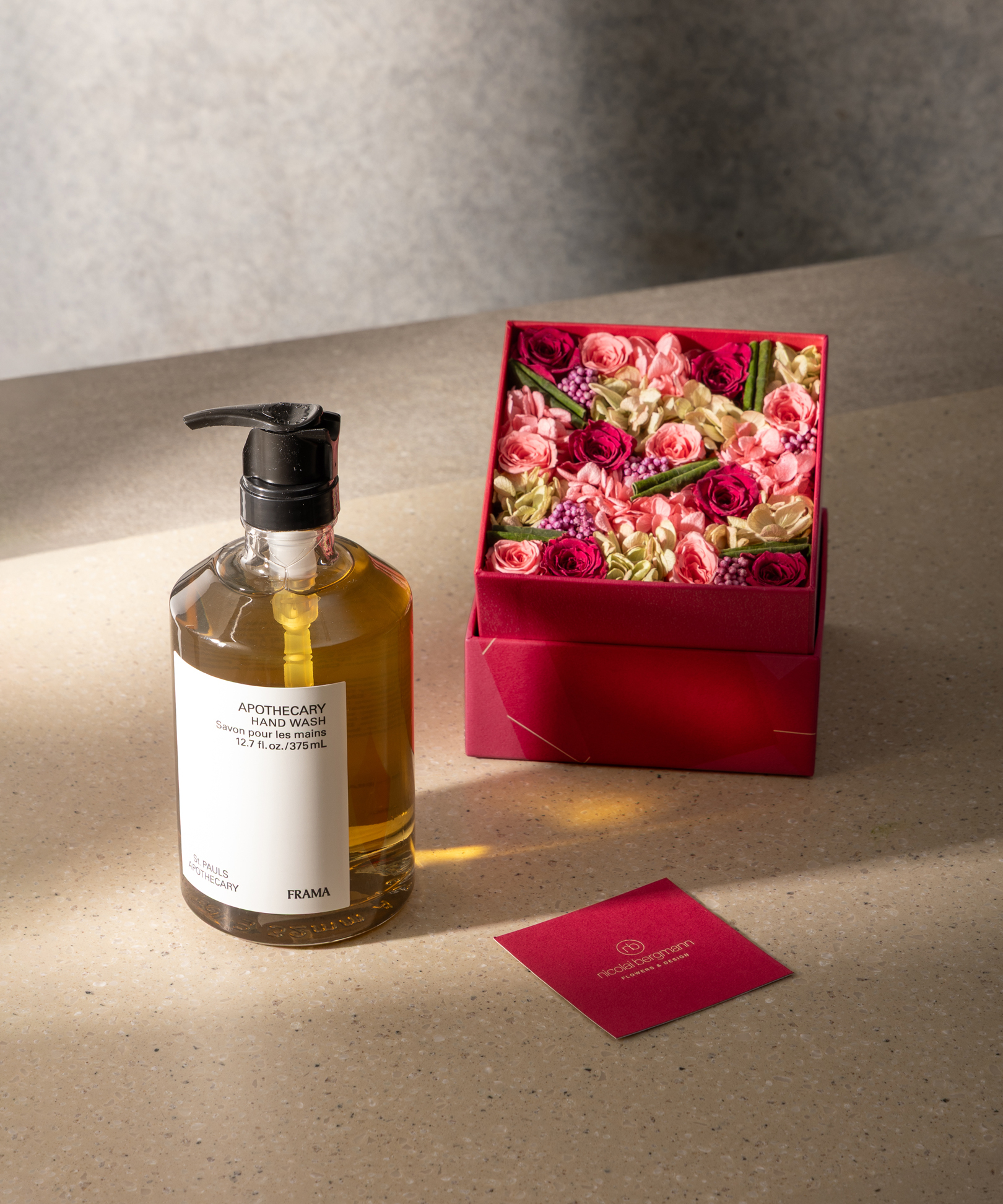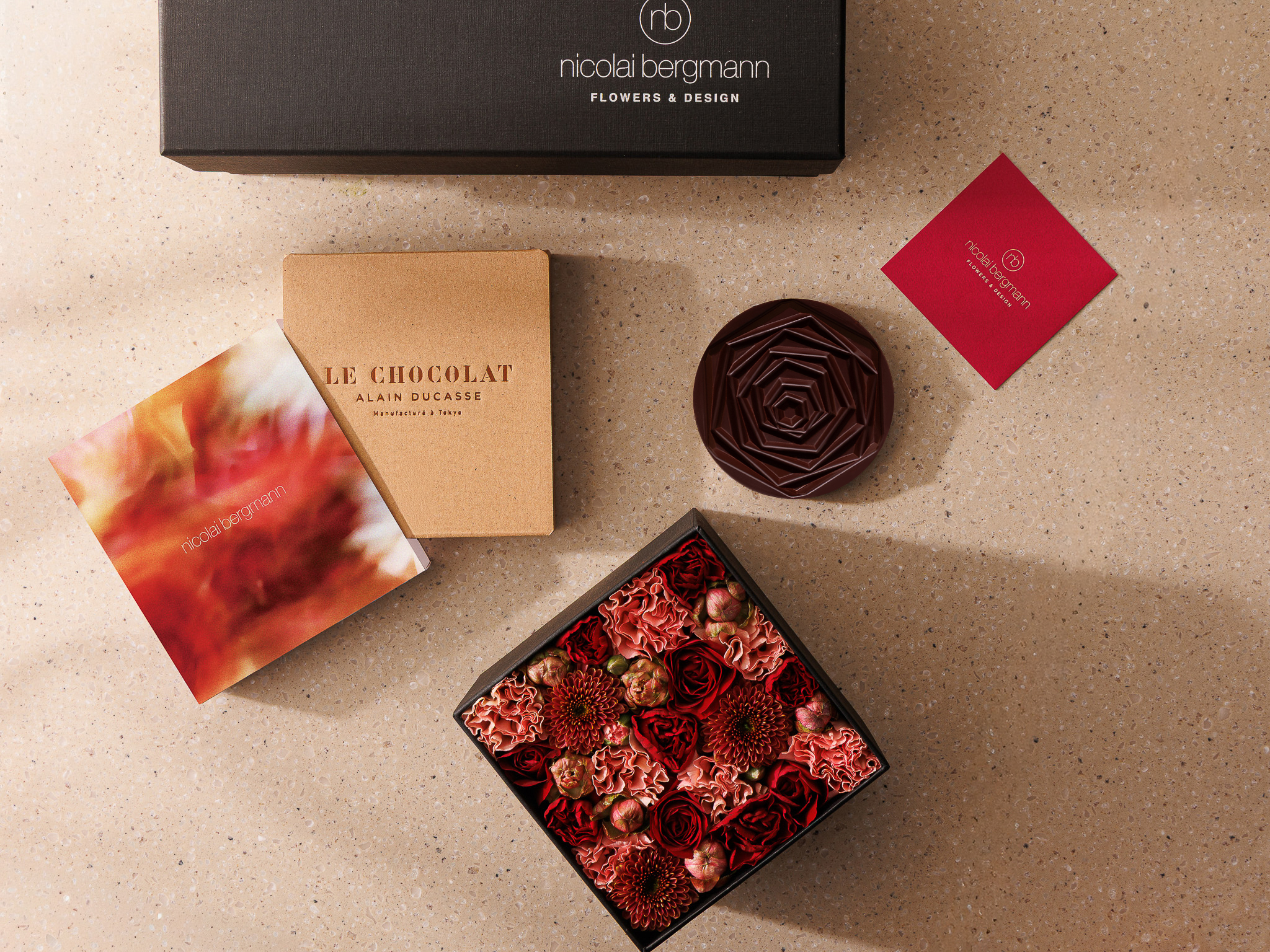 さらに、〈Le Chocolat Alain Ducasse(ル・ショコラ・アラン・デュカス)〉、〈FRAMA(フラマ)〉とのギフトセットも展開。〈Le Chocolat Alain Ducasse〉のオリジナルショコラ「ローズ・マンディアン ノワール」や〈FRAMA〉のハンドウォッシュとフラワーアイテムを組み合わせた特別なセットも登場します。