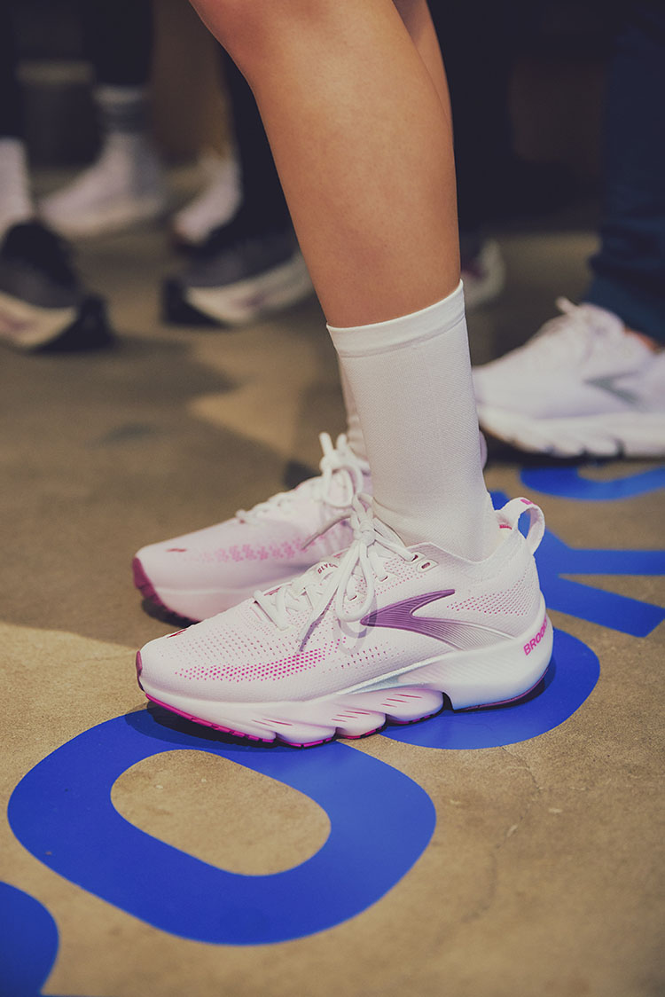 今回試し履きしたのは、〈BROOKS〉のなかでも屈指のクッショニングを誇る「Glycerin」シリーズ、「Glycerin MAX2」と「Glycerin FLEX」。「Glycerin MAX2」は厚底かつふわふわのクッション性で、力を入れずとも足が自然と前へ進む、まさにランニング初心者向けの一足。一方、「Glycerin FLEX」は少し薄めでよく曲がるソールが特徴。自分のスピードに合わせて柔軟にフィットしてくれます。