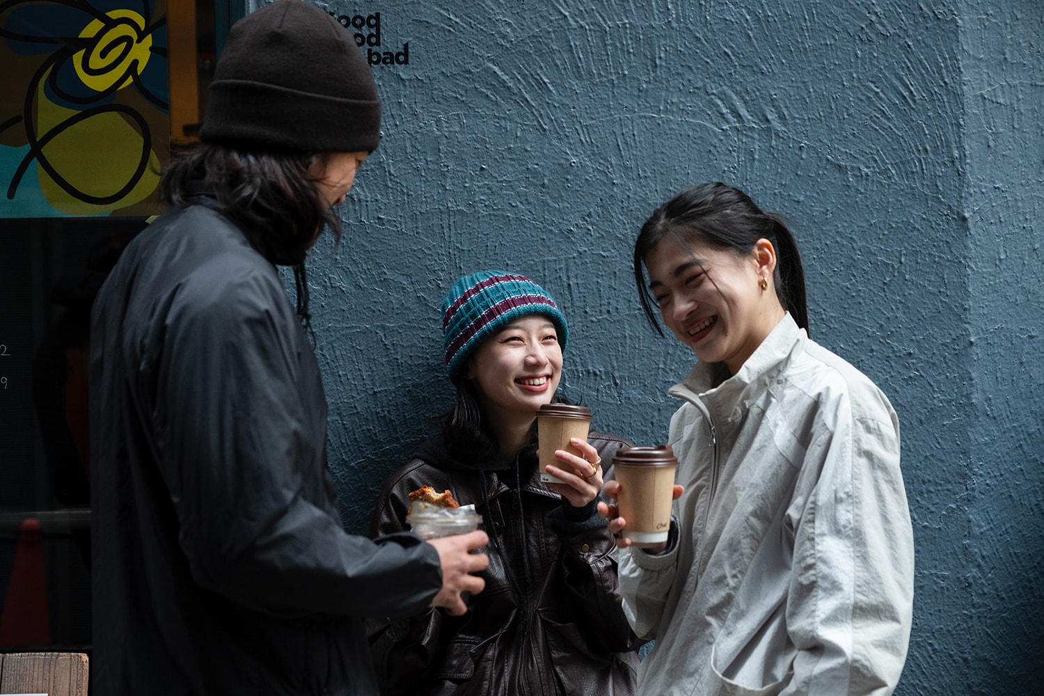 15分ほど歩いたら、コーヒーショップ「Good good not bad」へ。コーヒーやカフェラテ、ココアなど各々好きなドリンクを注文しつつ、みんなで人気メニューのバナナブレッドをいただきました。早起きして立ち寄るカフェは、やっぱり気持ちがいい!