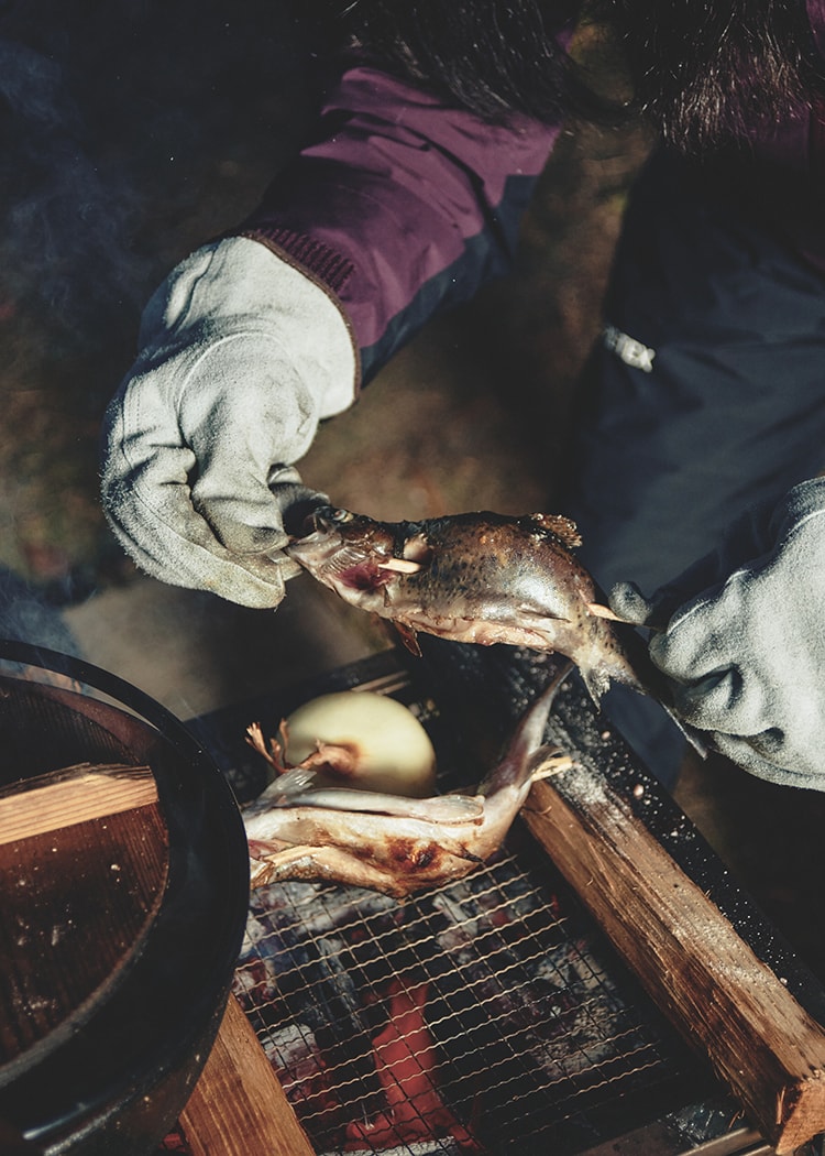 夏に釣りに行ったときに1匹も釣れず、リベンジ! 序盤は苦戦しましたが、少し工夫してみたら無事釣れてすごく嬉しかったです。初冬の山梨は寒かったけど、そんななかで食べたご飯はとても体に沁みて、自然のありがたみを感じた2日間でした。